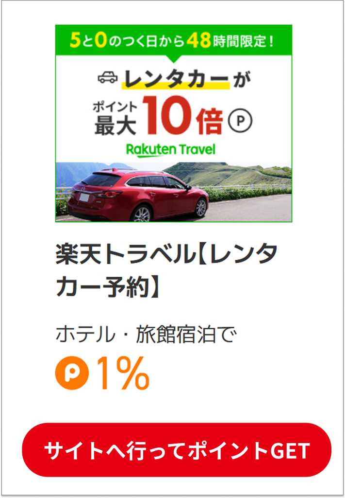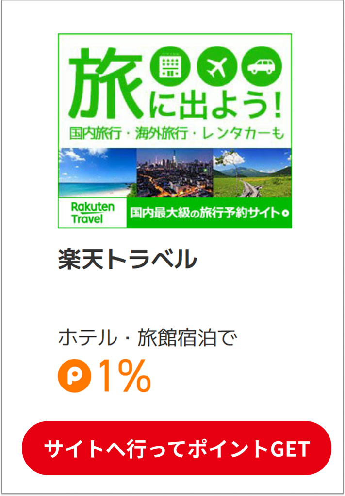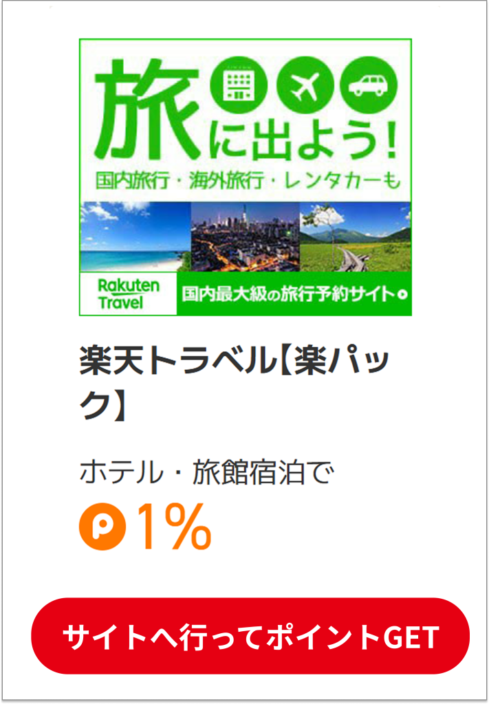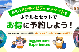 ・国内の体験:楽天ポイントがポイント2倍(+1%)