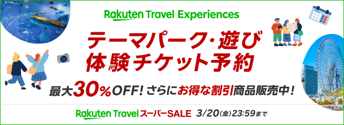 有名テーマパークのチケットやお出かけ先での「体験・遊び」をお得に予約できるサービスです♪