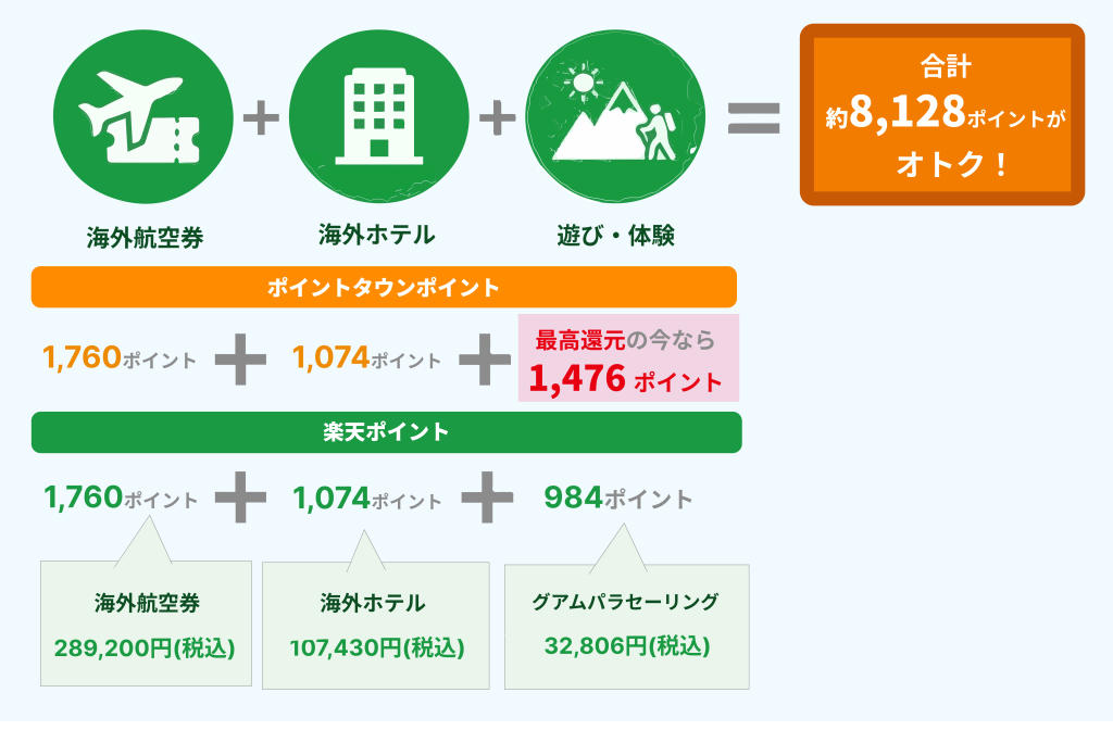・海外の体験:楽天ポイントがポイント3倍(+2%)